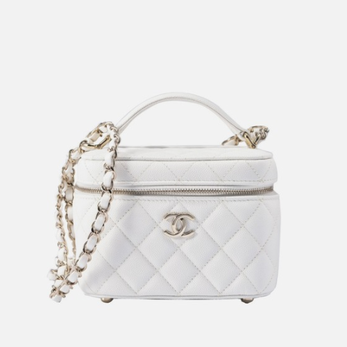 Step into luxe sophistication with this stunning quilted vanity-style crossbody. Designed in a creamy white tone with elegant gold-tone hardware, this beauty brings timeless glamour to any outfit — day or night.