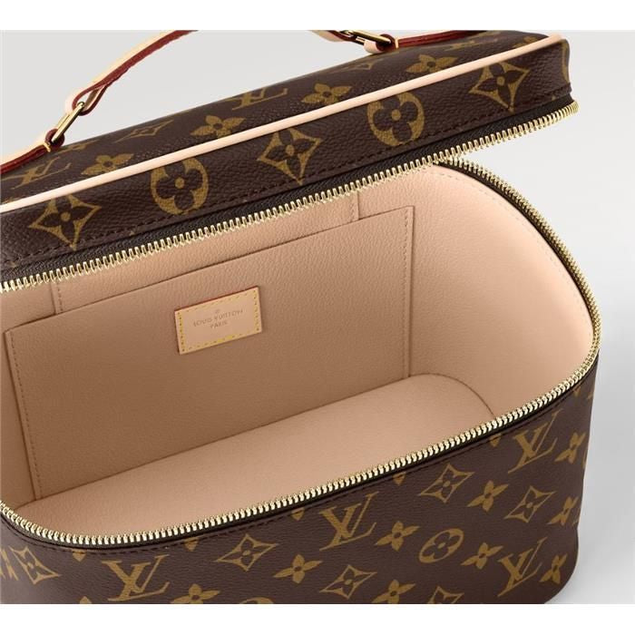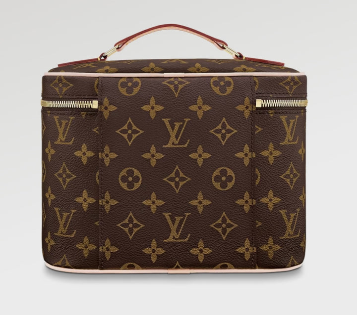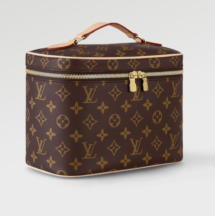 This chic cosmetic bag offers the perfect balance of elegance and practicality. Designed in rich brown canvas with a signature floral monogram, it’s roomy enough to store all your beauty essentials — from makeup brushes to travel-size skincare. With its structured silhouette, smooth zip closure, and easy-to-clean interior, this piece is a must-have for both daily use and travel.