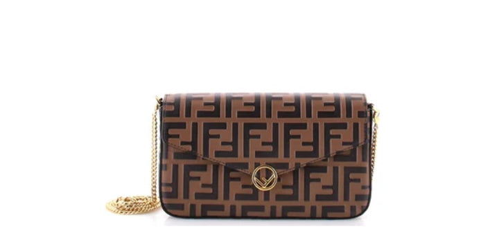 This Fendi Zucca Monogram Flap Bag with Matching Pouch offers both versatility and iconic style. Crafted in the signature FF Zucca canvas, the set includes a structured flap bag with gold-tone logo detail and a coordinating zip-top pouch that fits perfectly inside.