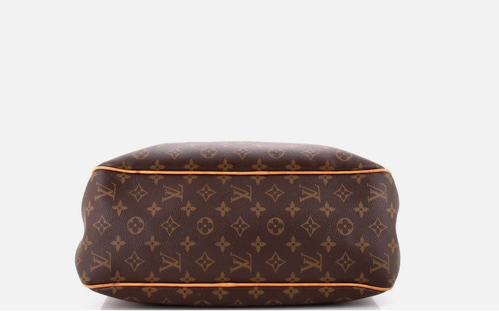 This spacious medium-size bag features an open-top design for easy access, accented with a comfortable single shoulder strap and signature gold-tone hardware. The refined detailing and classic monogram pattern make it an essential piece for daily wear, travel, or polished casual outfits.