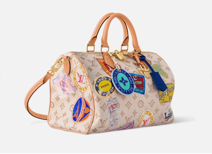 Step into luxury with the Flight Mode Monogram Dune Speedy 30 Bag, a beautifully detailed travel-inspired design that blends timeless style with modern functionality. Crafted from durable coated canvas in a soft dune tone, this statement piece features a signature monogram pattern accented with vintage travel sticker prints for a jet-setter look.