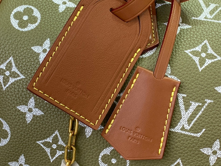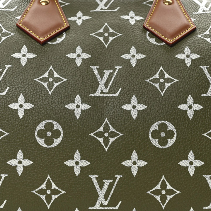 Step into timeless luxury with this stunning Speedy 30 in an elegant olive-green monogram finish. This classic satchel features rich brown leather trimming, gold-tone hardware, and the perfect everyday silhouette for elevated style. With its roomy interior and structured shape, it easily transitions from day to night while keeping your essentials secured in style.