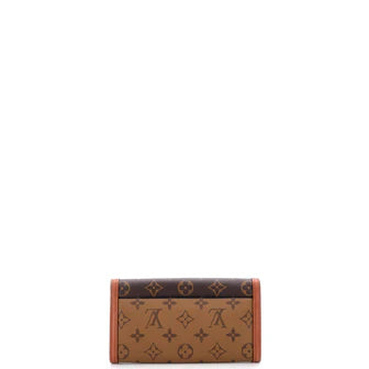 Turn heads with this beautifully crafted large wallet, featuring a striking reverse monogram canvas design that blends timeless charm with modern sophistication. The structured flap closure is accented with a sleek gold-tone buckle detail, giving it a polished, upscale finish. Inside, multiple card slots, a secure zip coin pocket, and roomy compartments make it as functional as it is fashionable — perfect for keeping your essentials organized in style.