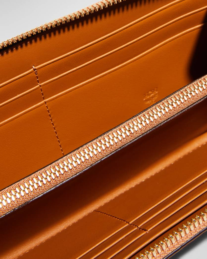 Inside, you’ll find a thoughtfully organized layout featuring a center zip pocket, a full bill compartment, and twelve card slots — perfect for keeping your essentials secure and stylish. Finished with a zip-around closure, this wallet offers both function and fashion in one sleek silhouette.